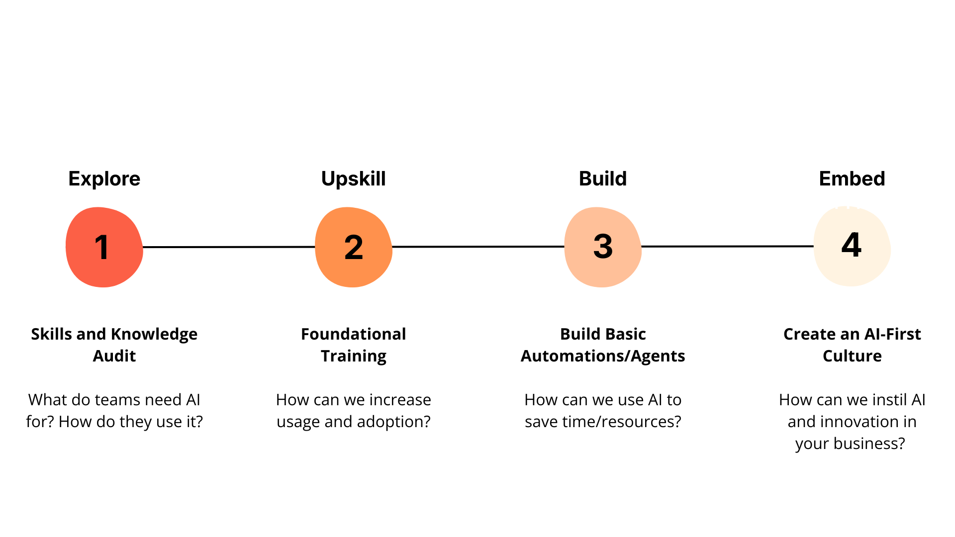 From conversations with leaders, we understand it can be confusing to know where to begin with implementing AI in your business. We help you get started.